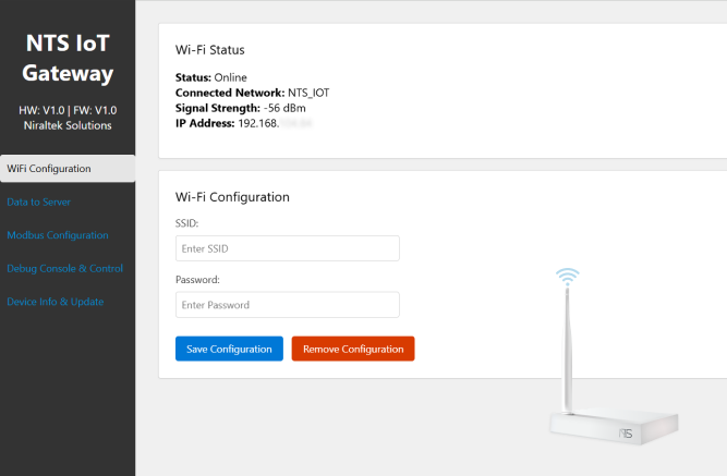 Open a web browser, enter the device's IP address and navigate to Wi-Fi Configuration. - Step 2: Configure the Connection