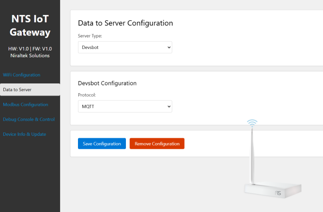 Choose the Server Type (e.g., DevsBot / Custom ) and select the desired Protocol (MQTT or HTTP). - Step 3: Save & Verify Connection